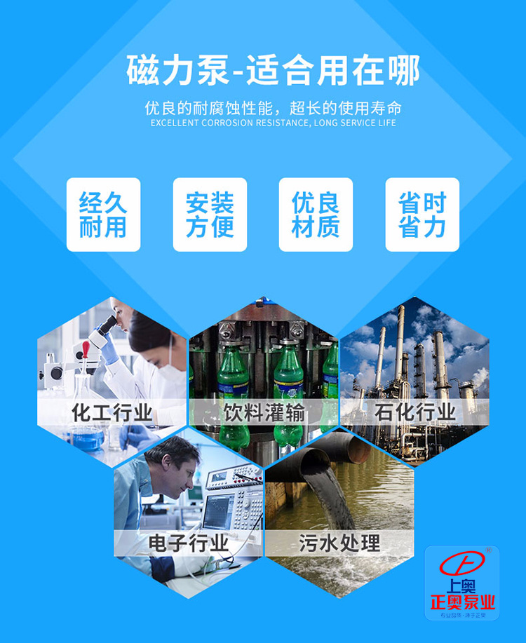 上奧牌ZCQ型自吸式磁力驅(qū)動(dòng)泵(以下簡(jiǎn)稱自吸泵)該泵以靜密封取代動(dòng)密封,使泵的過(guò)流部件處于完全密封狀態(tài),解決了其它泵機(jī)械密封無(wú)法避免的跑、冒、滴、漏之弊病,泵體及過(guò)流部件的材料均采用了耐腐蝕的不銹鋼、鋼玉陶瓷、四氟石墨等材料制造,既有CQ型磁力驅(qū)動(dòng)泵的功能,又集皂吸于一身,不需底閥和引灌水,自吸高度4米。